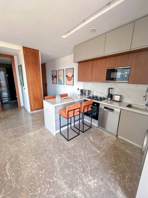 The space 🏡 Welcome to Nook – Your Luxury 1BR Retreat in Casablanca’s Premier CFC District Step into comfort and sophistication in this beautifully designed 1-bedroom apartment, perched on the 8th floor of one of CFC’s most exclusive buildings. Whether you're visiting Casablanca for business or leisure, Nook offers the perfect blend of style, security, and serenity in the city's most prestigious neighborhood. ✨ What You’ll Love: 🛏 Spacious 1 Bedroom with a premium queen-sized bed and high-quality linens 🖼️ Modern Living Space with tasteful décor and natural light 🍳 Fully Equipped Kitchen with everything you need to cook and dine 🏋️♀️ Free Gym Access – stay on track with your fitness goals 🌇 8th-Floor Views and a quiet atmosphere high above the city 🌐 Fast Wi-Fi, smart TV – perfect for digital nomads 🅿️ Secure building with private parking ❄️ Air conditioning and heating for year-round comfort 📍 Prime Location – CFC, Casablanca Located in the heart of Casablanca Finance City (CFC), you’ll be just minutes from top restaurants, cafés, shopping, and business hubs. Safe, clean, and upscale – it’s one of the most sought-after neighborhoods in the city.